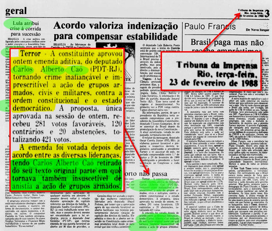 O jornalista Kim Paim, premiado pelo ibest por várias vezes, trouxe hoje, no seu vídeo diário na plataforma YouTube, argumentos irrefutáveis que provam a constitucionalidade da ANISTIA AMPLA, GERAL E IRRESTRITA. Mas, além de seu vídeo, Kim trouxe uma thread do material usado no seu programa, usando material histórico e jornalístico, usando arquivos da biblioteca nacional.
